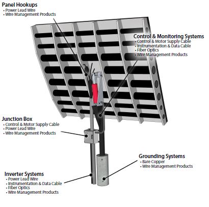 Solar applications bring their own set of challenges with wire, cable and wire management product selection. First and foremost are weather related issues. Components must be UV-rated to withstand years of harsh sun exposure. The same goes for exposure to dust, especially in desert installations. Finally, due to the remote location of most installations, downtime must be minimized at all costs to keep the arrays running efficiently.